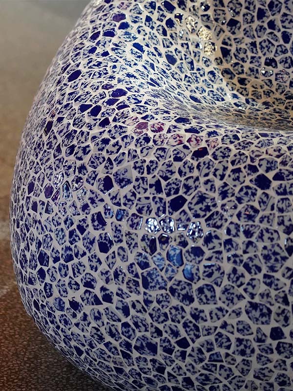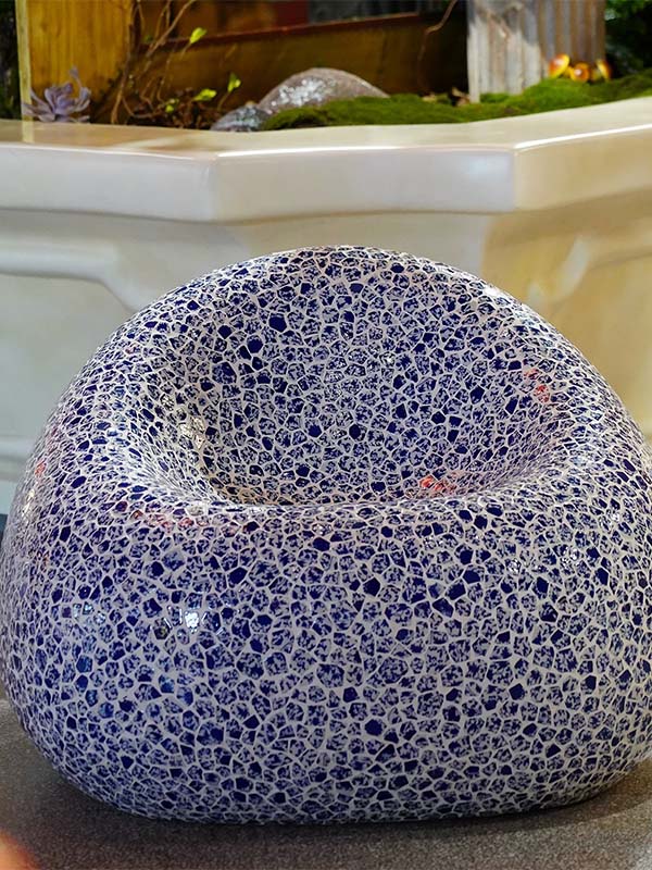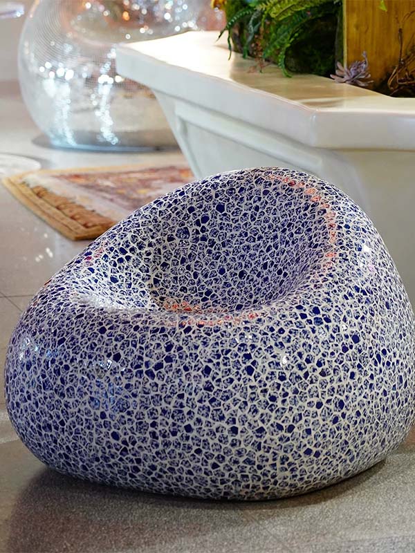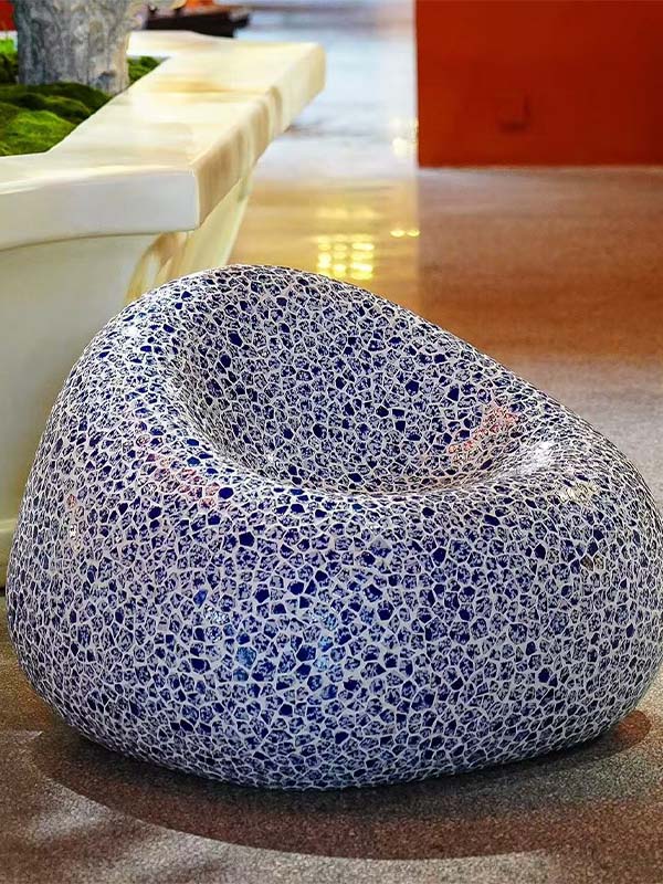 This custom Glass Mosaic Sculptural Furniture Seating is designed for commercial interiors and public spaces, combining functional furniture use with artistic sculptural form. Manufactured with a reinforced fiberglass structure and finished with handmade glass mosaic artwork, it serves as both Sculptural Furniture and a visual focal point in high-end environments.
