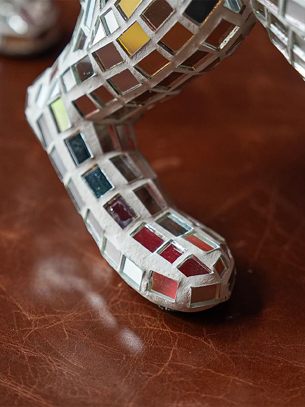 This mirror mosaic leopard sculpture is built with a reinforced FRP (fiberglass) structure and finished with hand-applied mirror glass mosaic tiles. The reflective surface enhances lighting and spatial depth, making it an ideal decorative sculpture for shopping malls, hotels, exhibitions, and branded commercial spaces.