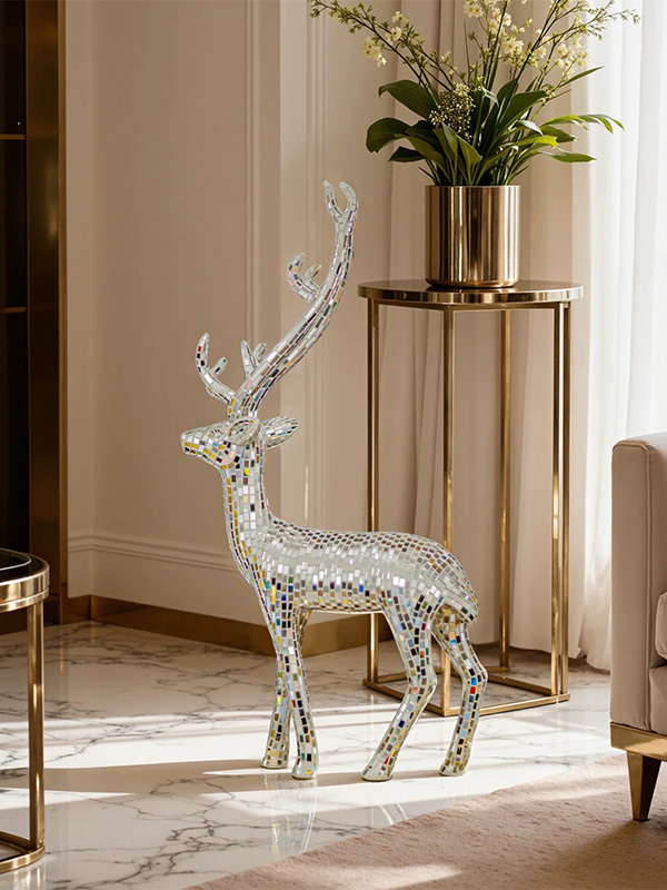 Стеклянная зеркальная мозаика ручной работы с изображением пятнистого оленя, рождественская скульптура оленя, украшения для отеля