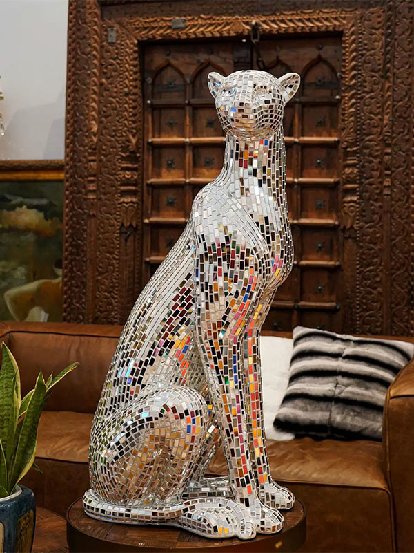 Скульптура животного-леопарда — это красивое и уникальное произведение искусства, созданное и созданное на тему леопарда. Он сочетает в себе традиционные методы скульптуры и. Размер мозаичной скульптуры леопарда можно настроить в соответствии с потребностями клиентов. Мозаичные Скульптуры может использоваться в качестве внутреннего или наружного украшения, например, домов, офисов, общественных зданий, садов или парков. Они не только декоративны, но и демонстрируют вкус и уникальность владельца, придавая обстановке художественную атмосферу.
